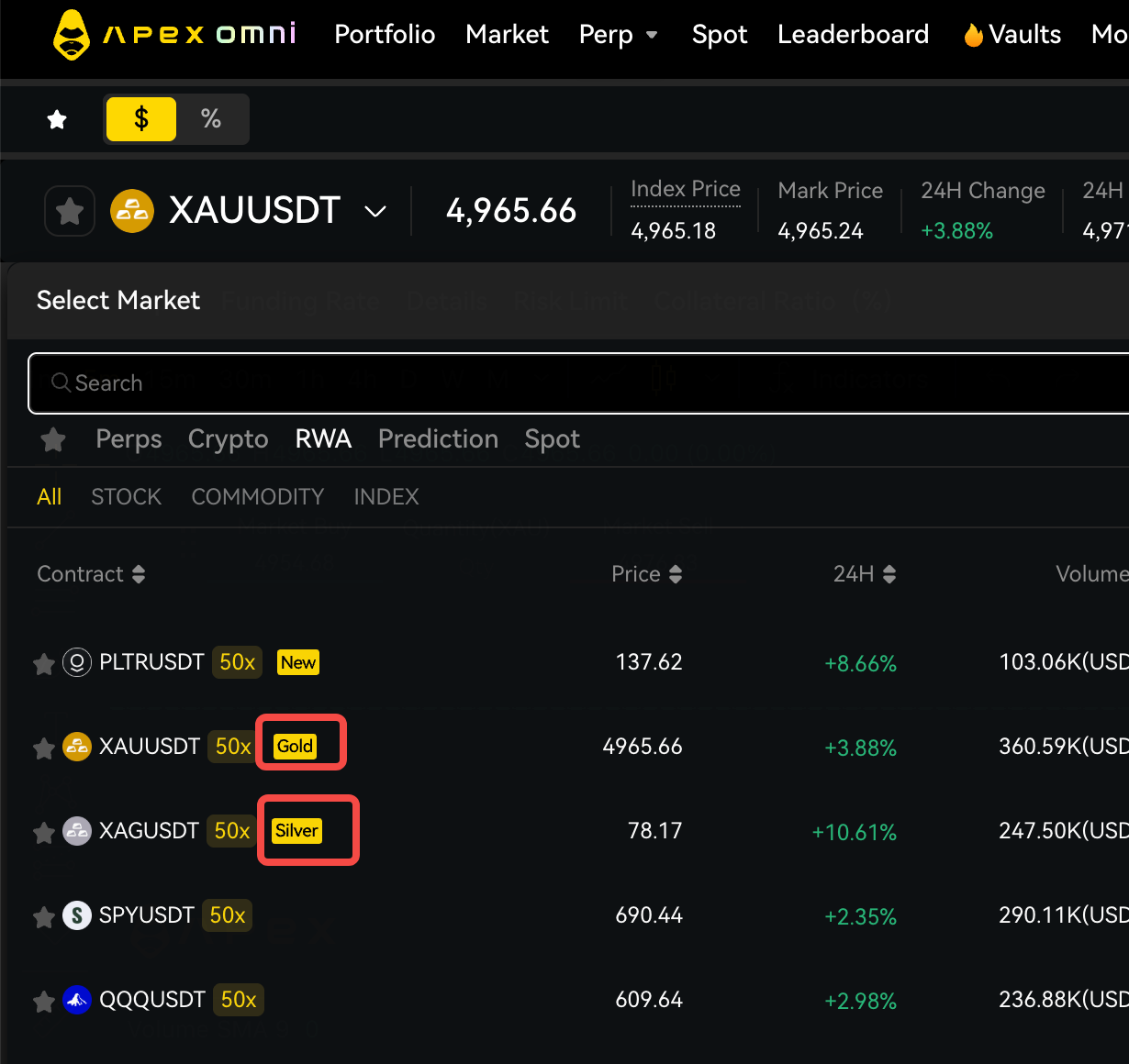 New RWA Identifiers: Finding precious metals is now easier with new "Gold" and "Silver" tags added specifically for XAU and XAG RWA Perps.