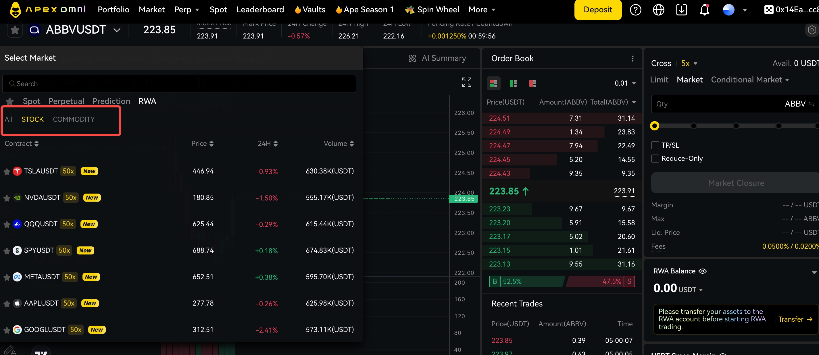We've rebranded our Stock Perpetuals section to RWA (Real World Assets) with new sub-sections for better navigation. This change reflects our broader vision of bringing traditional asset exposure to DeFi, starting with stocks and expanding to more real-world assets in the future.