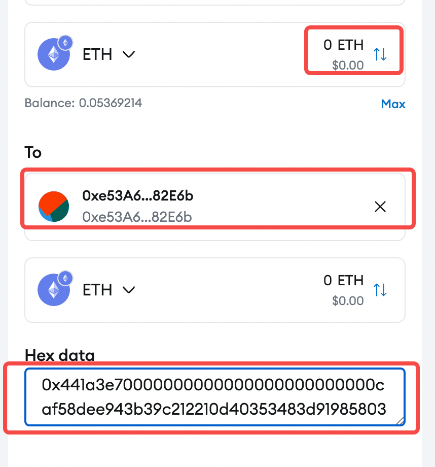 This is the most critical step. You need to input specific hex data that includes your wallet address.